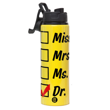 Miss, Mrs, Ms, DR, Metallic water bottle with safety lid, 850ml aluminum