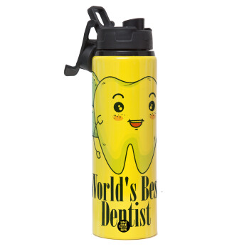 World's Best Dentist, Metallic water bottle with safety lid, 850ml aluminum