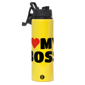 I LOVE MY BOSS, Metallic water bottle with safety lid, 850ml aluminum