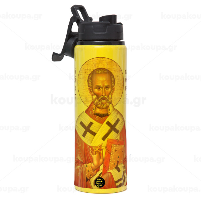 Saint Nicholas orthodox , Metallic water bottle with safety lid, 850ml aluminum