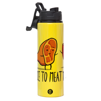 Nice to MEAT you, Metallic water bottle with safety lid, 850ml aluminum