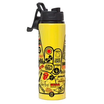 Best Rock Bands hand, Metallic water bottle with safety lid, 850ml aluminum