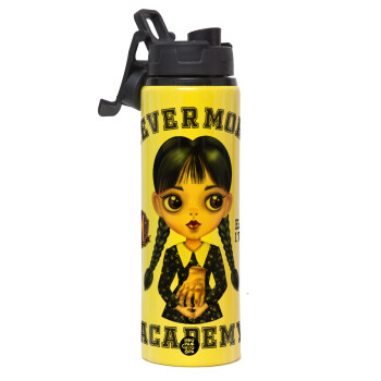 Wednesday Adams, nevermore, Metallic water bottle with safety lid, 850ml aluminum