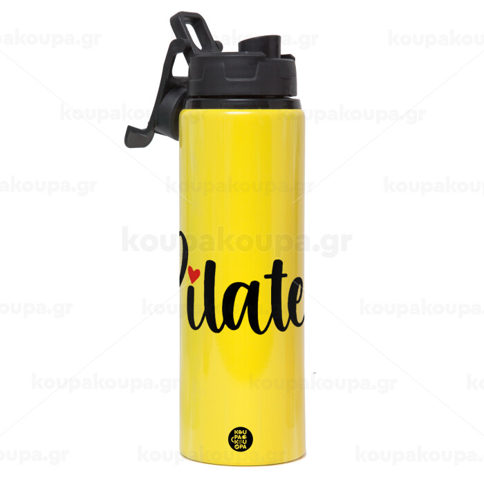 Pilates love, Metallic water bottle with safety lid, 850ml aluminum
