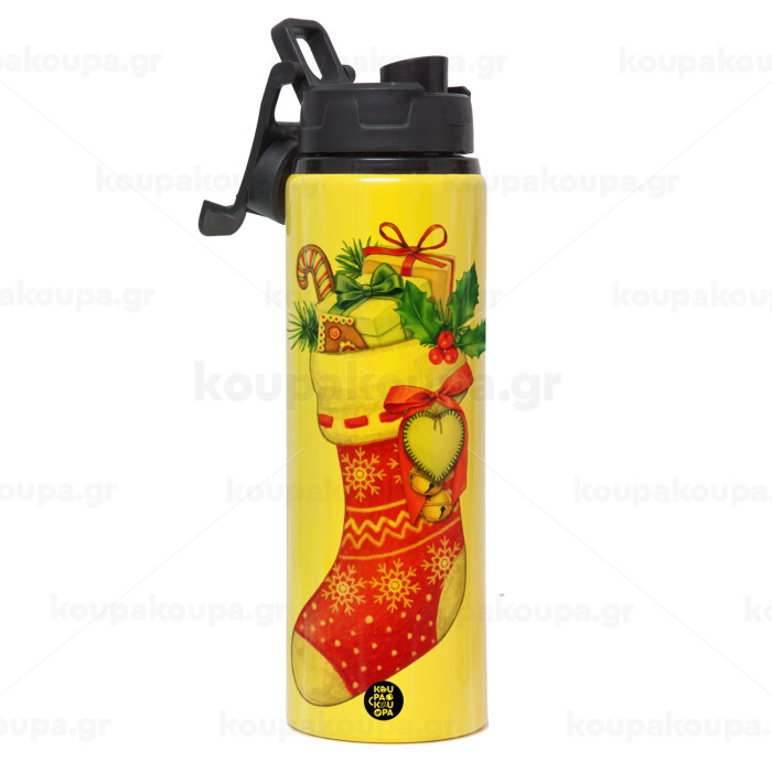 Xmas boot, Metallic water bottle with safety lid, 850ml aluminum