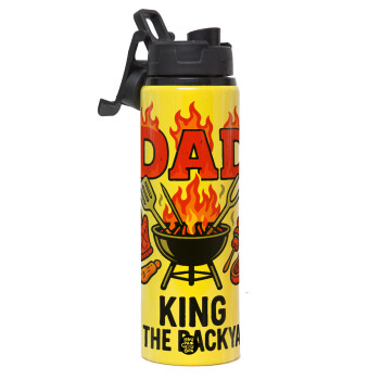 DAD "King of the Backyard", Metallic water bottle with safety lid, 850ml aluminum