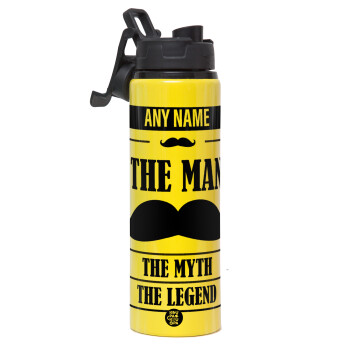 The man, the myth, Metallic water bottle with safety lid, 850ml aluminum