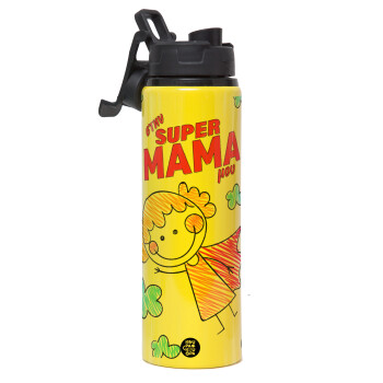 Στην SUPER μαμά μου, comic, Metallic water bottle with safety lid, 850ml aluminum