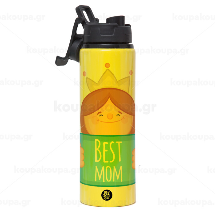 Best mom Princess, Metallic water bottle with safety lid, 850ml aluminum
