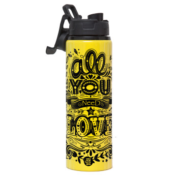 All you need is love, Metallic water bottle with safety lid, 850ml aluminum