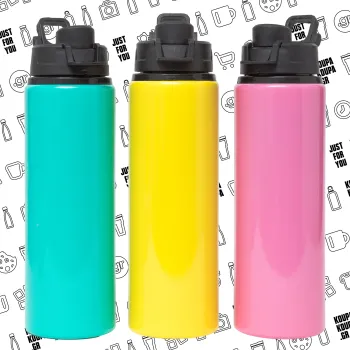 Made from pure aluminum (Single wall - Used as a simple bottle) with a safety latch lid and ring for support. With a very tight seal, 100% internal coating without phthalic compounds BPA, lead or other harmful substances. Very light.