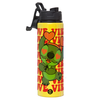 Lilo & Stitch Love vibes, Metallic water bottle with safety lid, 850ml aluminum