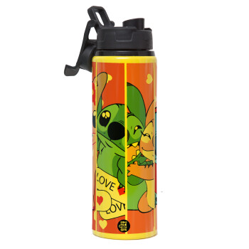 Lilo & Stitch Love, Metallic water bottle with safety lid, 850ml aluminum