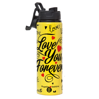 Love You Forever, Metallic water bottle with safety lid, 850ml aluminum