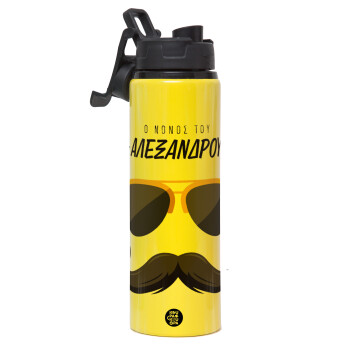 Ο νονός μου, μουστάκι με γυαλιά, Metallic water bottle with safety lid, 850ml aluminum