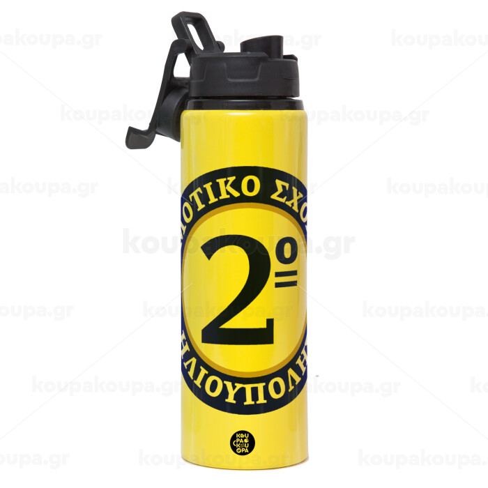 Έμβλημα Σχολικό μπλε/χρυσό, Metallic water bottle with safety lid, 850ml aluminum
