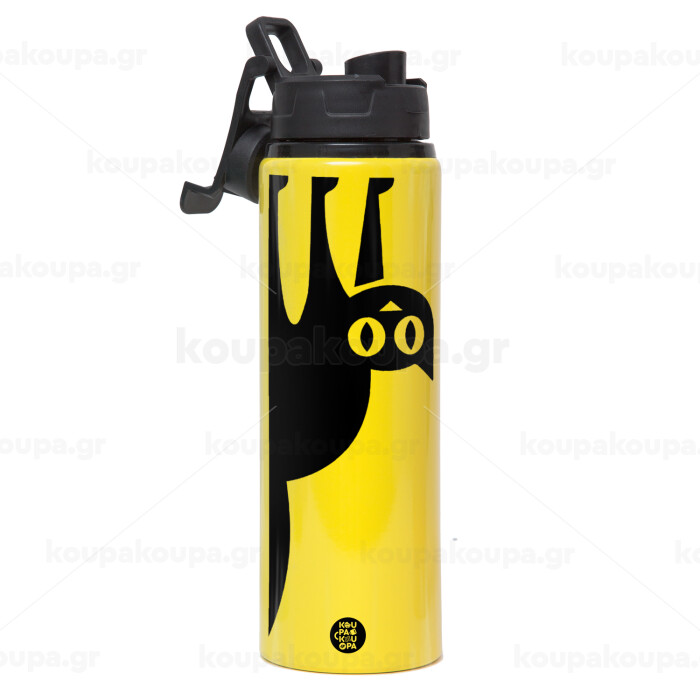 Cat upside down, Metallic water bottle with safety lid, 850ml aluminum