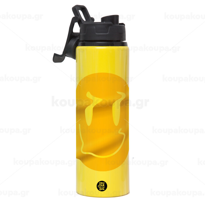 Smile avatar distrorted, Metallic water bottle with safety lid, 850ml aluminum