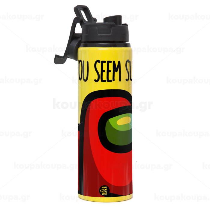 Among US, you seem sus, Metallic water bottle with safety lid, 850ml aluminum
