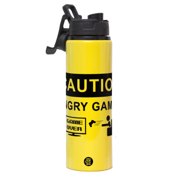 Caution, angry gamer!, Metallic water bottle with safety lid, 850ml aluminum
