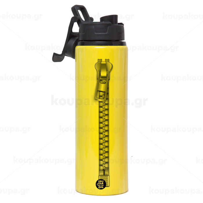 Zipper, Metallic water bottle with safety lid, 850ml aluminum