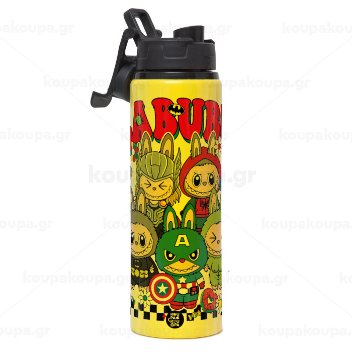 Labubu superheroes, Metallic water bottle with safety lid, 850ml aluminum