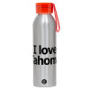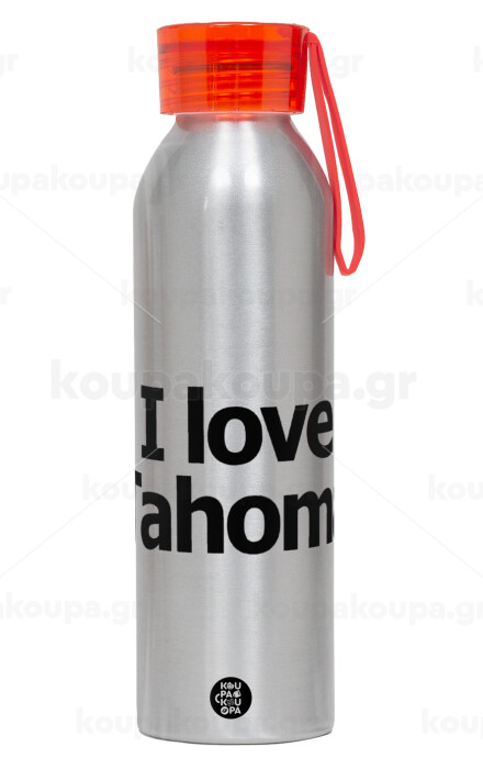 I love Tahoma, Aluminum Sports Bottle 650ml – Silver with Red Cap and Silicone Strap