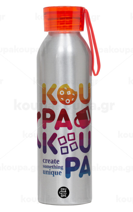koupakoupa, Aluminum Sports Bottle 650ml – Silver with Red Cap and Silicone Strap