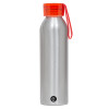 Aluminum Sports Bottle 650ml - Silver with Red Cap and Silicone Strap