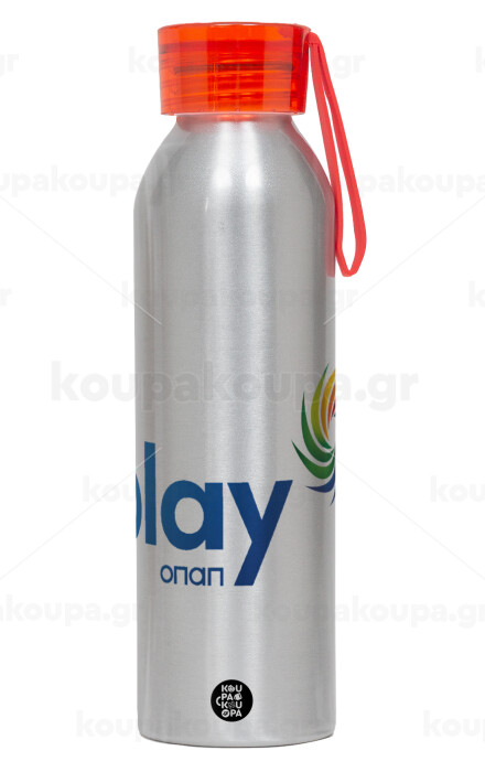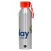 Play by ΟΠΑΠ, Aluminum Sports Bottle 650ml – Silver with Red Cap and Silicone Strap