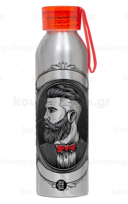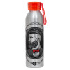 Barber shop, Aluminum Sports Bottle 650ml – Silver with Red Cap and Silicone Strap
