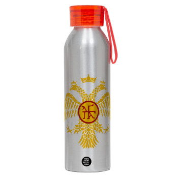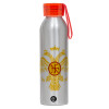 Byzantine Empire, Aluminum Sports Bottle 650ml – Silver with Red Cap and Silicone Strap