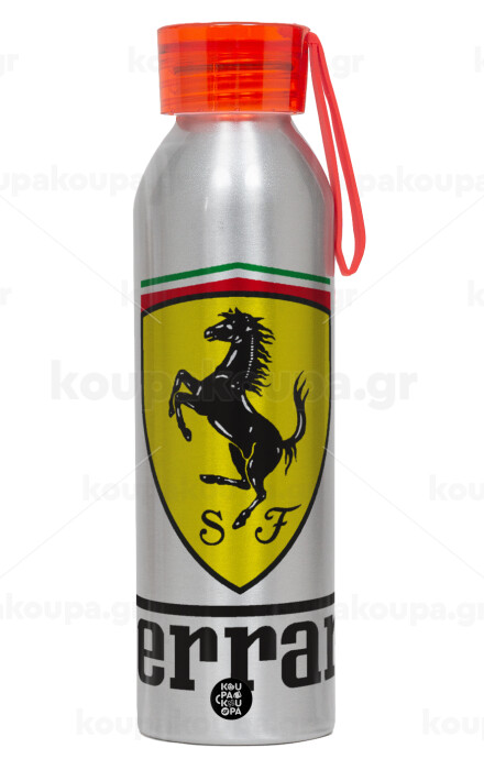Ferrari S.p.A., Aluminum Sports Bottle 650ml – Silver with Red Cap and Silicone Strap