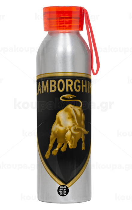 Lamborghini, Aluminum Sports Bottle 650ml – Silver with Red Cap and Silicone Strap