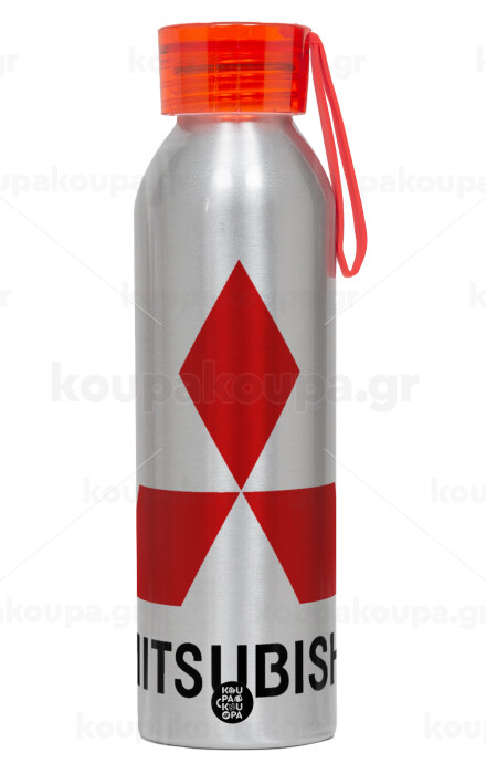 mitsubishi, Aluminum Sports Bottle 650ml – Silver with Red Cap and Silicone Strap