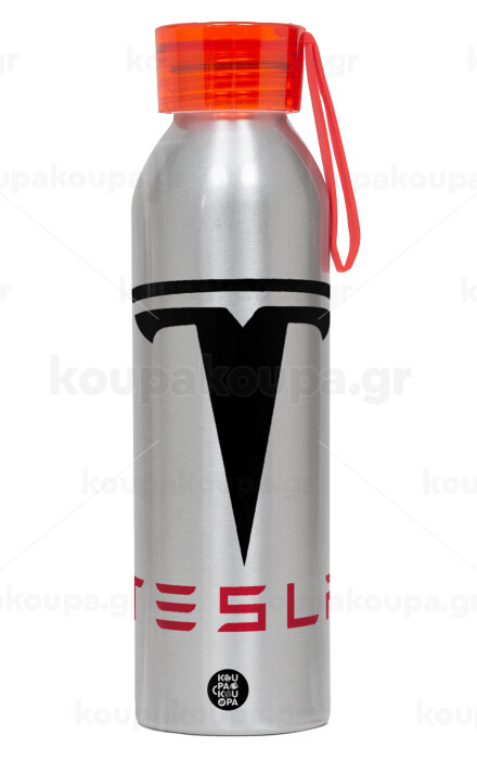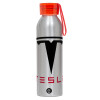 Tesla motors, Aluminum Sports Bottle 650ml – Silver with Red Cap and Silicone Strap