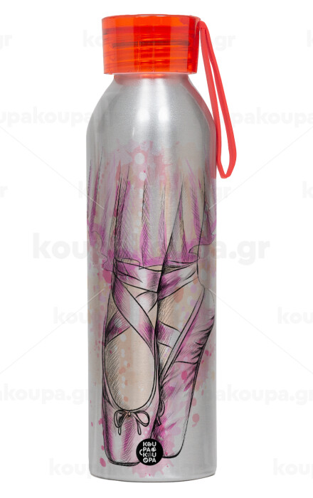 Ballerina shoes, Aluminum Sports Bottle 650ml – Silver with Red Cap and Silicone Strap