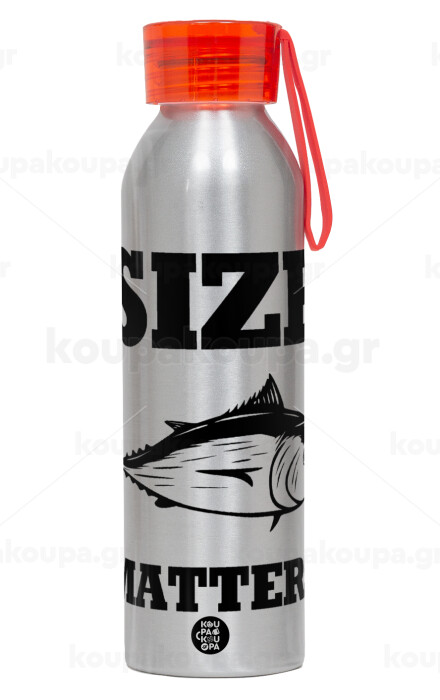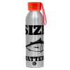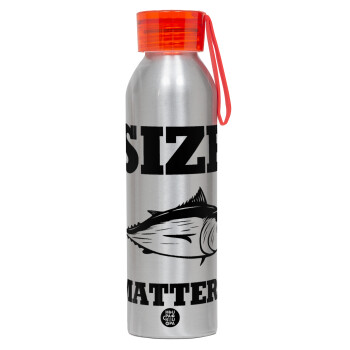 Size matters, Aluminum Sports Bottle 650ml – Silver with Red Cap and Silicone Strap
