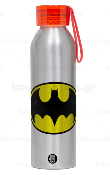 Batman, Aluminum Sports Bottle 650ml – Silver with Red Cap and Silicone Strap