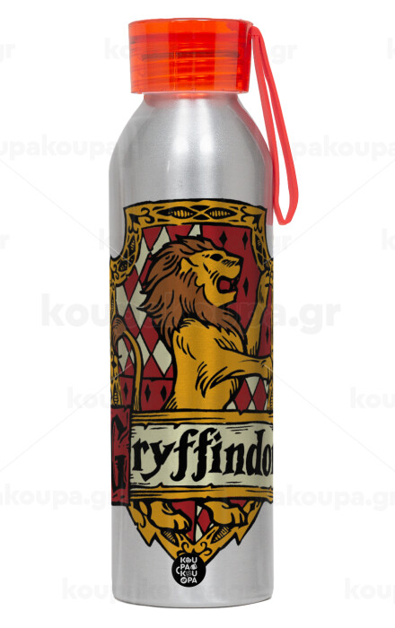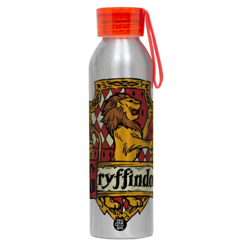 Gryffindor, Harry potter, Aluminum Sports Bottle 650ml – Silver with Red Cap and Silicone Strap
