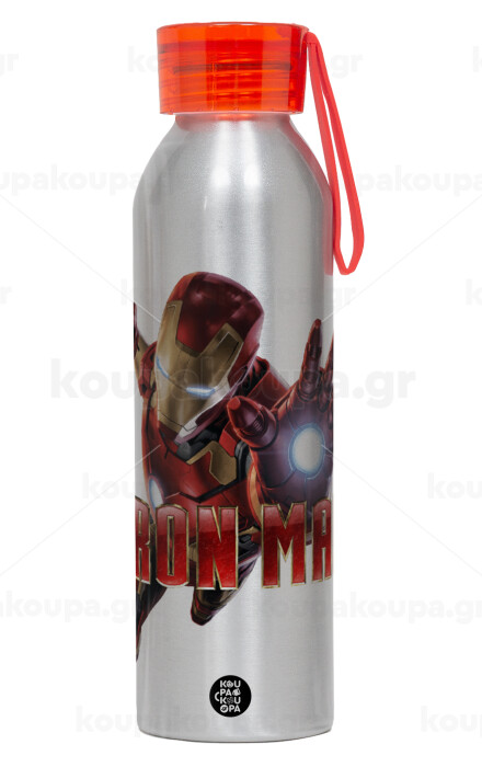 Ironman, Aluminum Sports Bottle 650ml – Silver with Red Cap and Silicone Strap