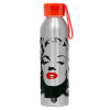 Merilin, Aluminum Sports Bottle 650ml – Silver with Red Cap and Silicone Strap