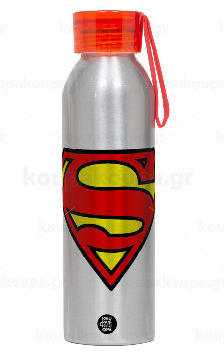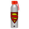 Superman vintage, Aluminum Sports Bottle 650ml – Silver with Red Cap and Silicone Strap