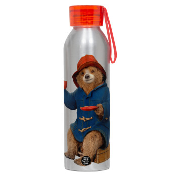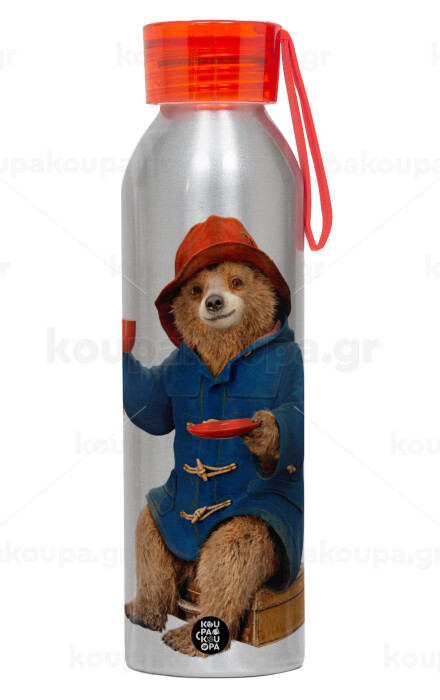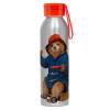 Αρκουδάκι Πάντινγκτον, Aluminum Sports Bottle 650ml – Silver with Red Cap and Silicone Strap