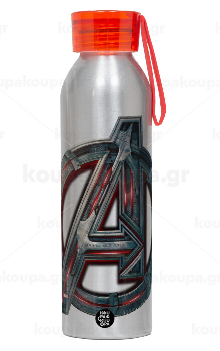 Avengers, Aluminum Sports Bottle 650ml – Silver with Red Cap and Silicone Strap
