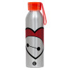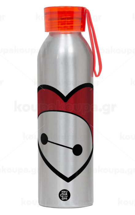 Baymax heart, Aluminum Sports Bottle 650ml – Silver with Red Cap and Silicone Strap