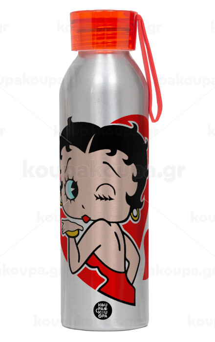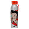 Betty Boop, Aluminum Sports Bottle 650ml – Silver with Red Cap and Silicone Strap