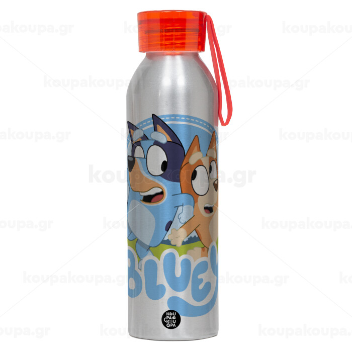 Μπλε, Aluminum Sports Bottle 650ml – Silver with Red Cap and Silicone Strap