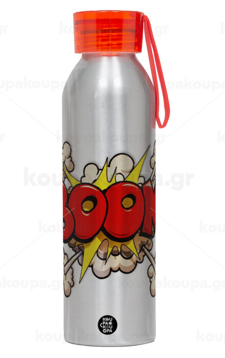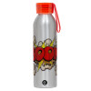 BOOM!!!, Aluminum Sports Bottle 650ml – Silver with Red Cap and Silicone Strap