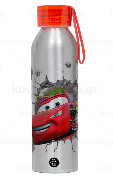 Brick McQueen, Aluminum Sports Bottle 650ml – Silver with Red Cap and Silicone Strap